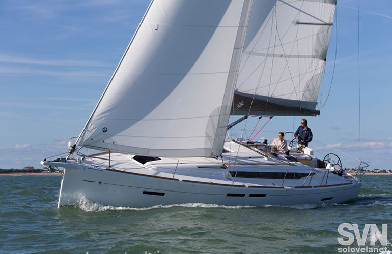 Un modello che è uscito nel 2015 a firma di Philippe Briand, uno dei maggiori progettisti francesi. È una barca adatta a lunghe navigazioni, più stretta dei suoi concorrenti, Dufour 412 e Oceanis 41, e con molta tela in più: le due cose insieme ne fanno una barca piuttosto veloce per essere un cruiser puro di costruzione industriale. La carena, profonda e meno piena a confronto con la concorrenza, gli garantisce una buona tenuta di rotta e un buon passo sull’onda formata, due cose che su una navigazione di 600 miglia vengono comode.