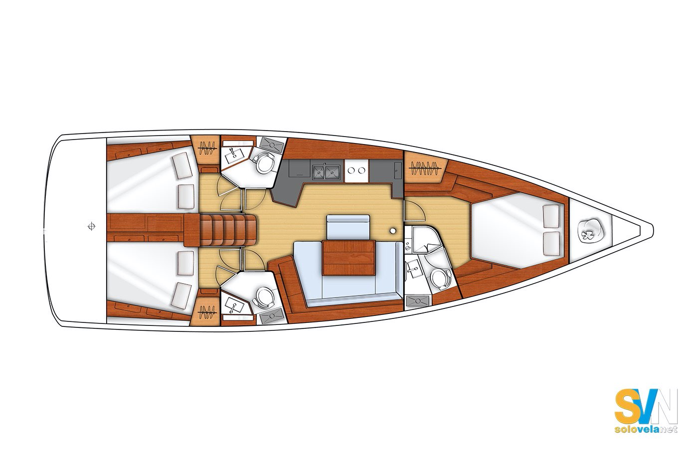 Quattro i differenti layout disponibili a seconda delle esigenze. Dalla versione a due cabine, pensata per chi non ama la compagnia, si passa alla versione a tre cabine, dove lo spazio è ulteriormente ampliato. La cucina può essere collocata a murata oppure ad angolo appena scesi nel quadrato. Infine, la configurazione più adatta al charter nautico è quella con quattro cabine separate, rigorosamente matrimoniali.