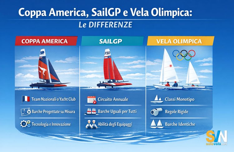 Il SailGP è invece un circuito annuale con barche identiche per tutti.
