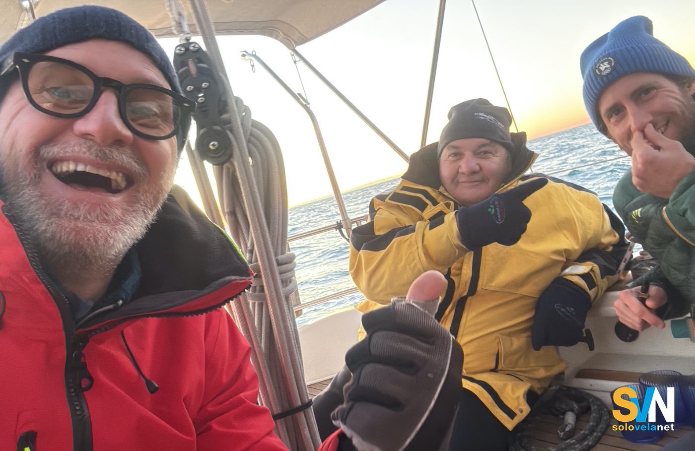 L’8 gennaio ero di nuovo a bordo, pronto a riprendere la rotta. Ma questa volta non ero più solo. Mio fratello Giacomo e Angelo Barbieri, navigatore di grande esperienza, si sono uniti per l’ultima parte del periplo. Dopo una lunga fase in solitaria, condividere la navigazione ha cambiato il ritmo del viaggio, arricchendolo sotto ogni aspetto.