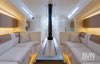 Italia 11,98 fa parte della gamma Sport line, la serie più sportiva del cantiere veneto. All’interno della gamma troviamo due diverse versioni, il Fuoriserie, la versione più sportiva e indicata per le regate a compenso, e la versione Bellissima versione per le regate di circolo e la crociera veloce. La barca è stratificata con stuoie biassiali e unidirezionali impregnate in vinilestere. Le strutture sono affidate a un ragno strutturale che comprende anche parti del mobilio e ha il compito di convogliare tutte le forze che si esercitano sulla barca, nella parte centrale dello scafo dove c’è la chiglia. Il piano velico è in comune a entrambe le versioni. Gli interni sono tradizionali con tre cabine e due bagni. Entrambi i bagni hanno la sola porta che da nella dinette. Qui troviamo una cucina a L sul lato di sinistra e un ampio tavolo da carteggio davanti a questa. Al centro due divani lineari tra i quali si trova un ampio tavolo con ante abbattibili. A prua la terza cabina con il letto a V.