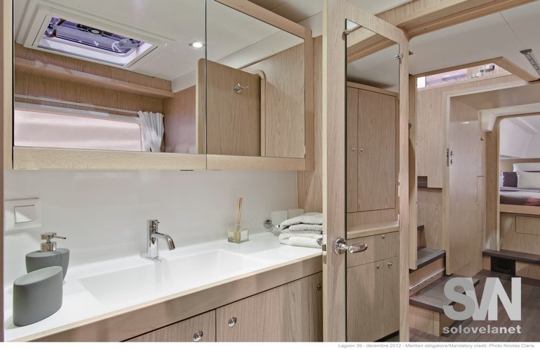 Il Lagoon 39 esce al salone di Cannes del 2013 insieme al Lagoon 52. Se in Italia la ripresa è ancora debole, in Europa le economie hanno ricominciato a correre e la Lagoon ne sta traendo vantaggio. Il Lagoon 39 è uno scafo moderno che ben risponde alle esigenze di spazio e volume. L’estetica è ancora quella un po’ pesante che domina in questi anni tra i catamarani, ma al di la della tuga un po’ alta, per il resto la barca è moderna e molto ben pensata, infatti sarà un grande successo. Il Lagoon 39 presenta una particolarità, una versione a due cabine e due bagni, questa sarà l’ultima volta che su di un 40 piedi apparirà la versione a due cabine e due bagni.