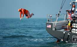 All'ultima boa del percorso, fra i saluti delle numerose barche spettatori, su quasi tutte le barche si è assistito all'ormai famoso “salto” di uno o più ospiti, fra cui un generoso fan americano da bordo di Team Alvimedica che ad ogni stopover organizza un'asta per raccogliere fondi per un'associazione benefica locale, nello specifico lo Zayed Giving Initiative’s Mobile Heart Clinic Program.