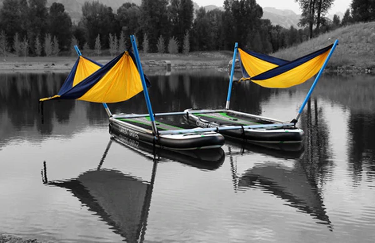Un’idea semplicissima della Hammorcraft è quella di un’amaca, galleggiante, a due posti. Quest’accessorio è composto da due scafi realizzati con due semplici tavole da sup, e una sovrastruttura alla quale si possono agganciare due amache.