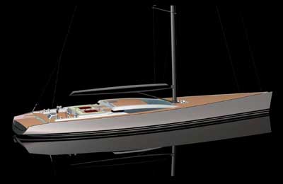 La carena è stata disegnata prendendo spunto dalle esperienze di barche da regata realizzate dallo studio Lombard. Il baglio molto largo imprimerà alla barca una forte stabilità di forma. Gli slanci di prua e poppa sono appena accennati e la carena verso prua diventa particolarmente stretta e sottile. La poppa a U fornisce un’ampia superficie di planata. Il tutto si esercita su di un dislocamento molto contenuto.