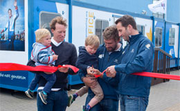 A tagliare il nastro sono stati Iain Percy insieme a Sir Ben Ainslie con Paul Goodison e i due figli di Simpson, Hamish e Fredy.
