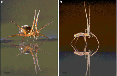 Si è visto che tutti i ragni sono riusciti a sostenersi sulla superficie dell’acqua con le zampe, tra questi molti hanno mostrato attitudini alla navigazione sorprendenti.