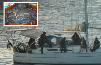 Arrivati a bordo i Narc francesi (Corpi speciali), hanno trovato la cabina di prua colma di pacchi contenenti cocaina per un totale di 680 chilogrammi.