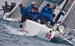 Più indietro Audi Fratelli Giacomel Melges 32 di Alessio Marinelli con Riccardo Simoneschi alla tattica e Gabriele