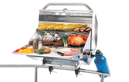 L’accensione del gas è elettrica. Il barbecue può essere dotato di una bomboletta di gas che si pone sul lato che lo rende autonomo. Si fissa sul pulpito di poppa grazie a due ganasce a vite. Il barbecue è interamente in acciaio inox, quindi facile da pulire.