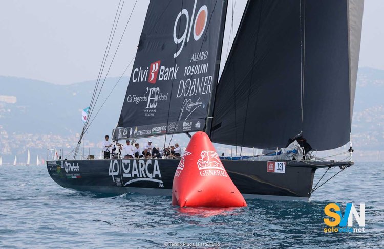 ARCA si è posizionata in testa dopo la rotazione del vento, tallonata da Way of Life e Prosecco a poche decine di metri sulla sua scia. Le velocità dei maxi sono però bassissime, intorno ai 6 nodi, ma quel tanto che basta per procedere verso la prima boa e il traguardo.