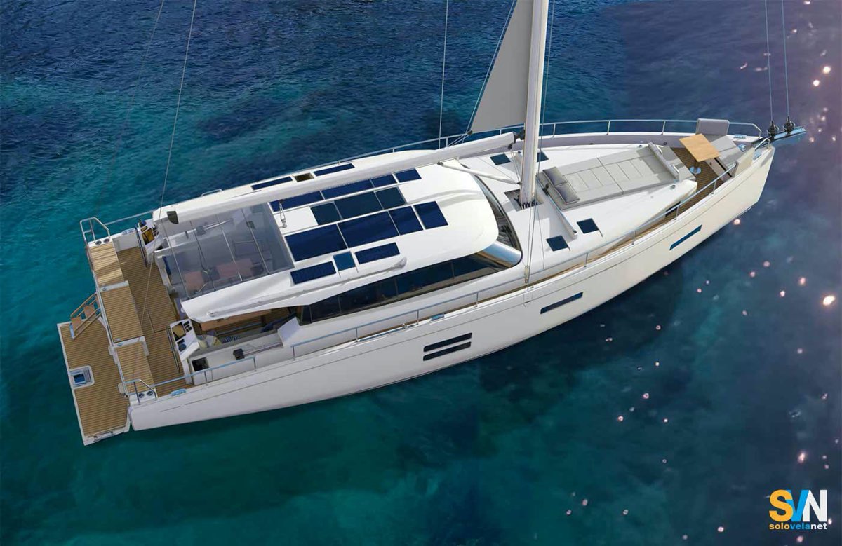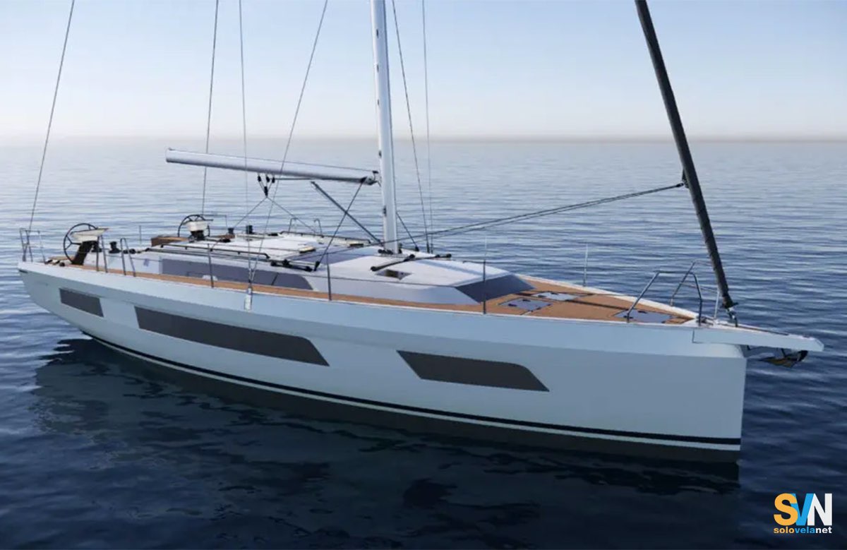 Una barca che riprende le linee del Dufour 41 del 2023, disegnata nelle linee d’acqua dallo studio Felci e per lo stile e gli interni dallo studio Ardizio Design.