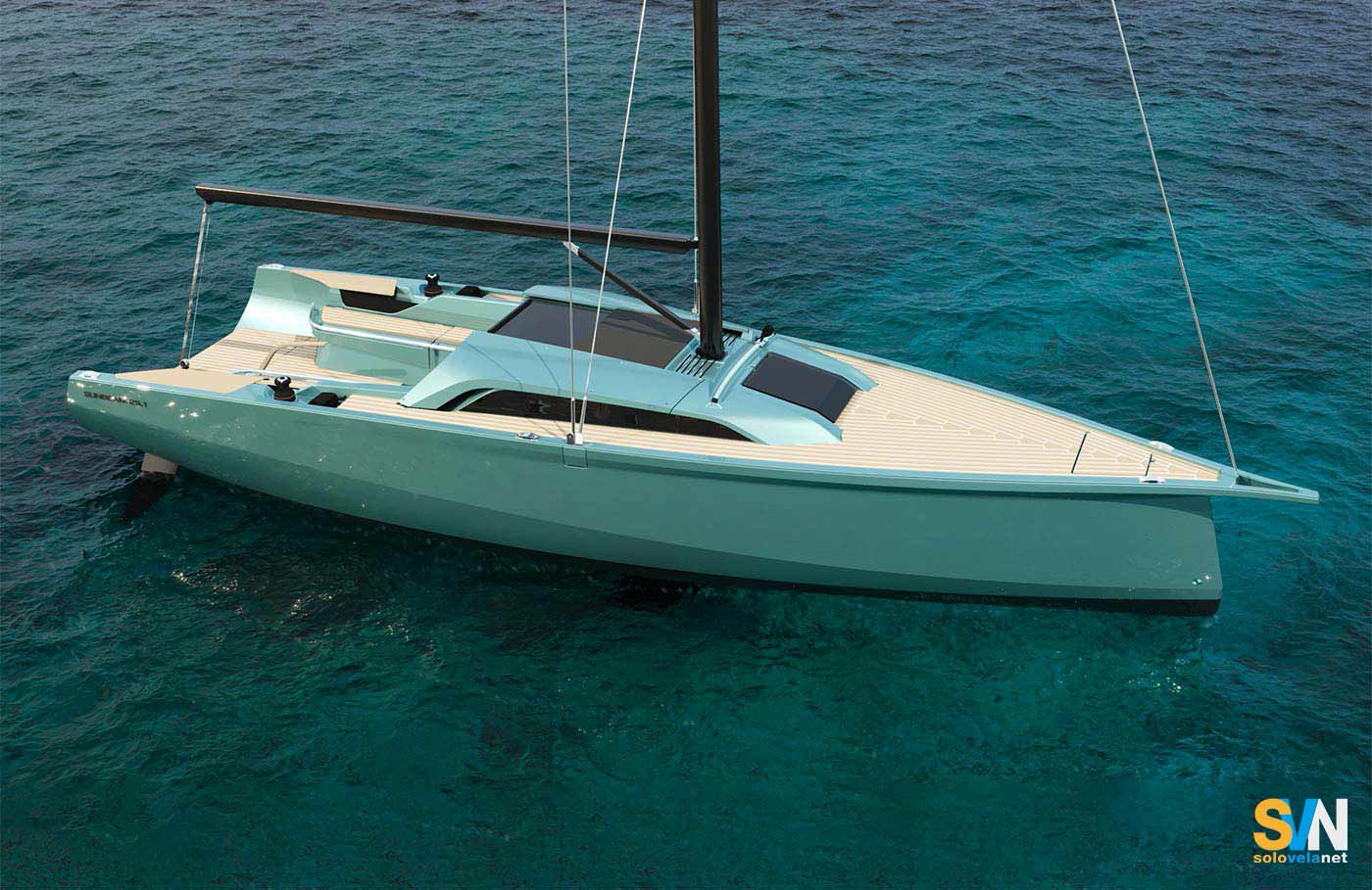 Potrebbe ricordare in qualche modo i Moth perché vola sull’acqua, ma è molto più grande di un Moth. Flo 1 è una deriva velocissima che vola sui foil. Non l’abbiamo provata, ma deve essere una barca molto divertente. L’Aeronamics è il cantiere olandese che produce queste imbarcazioni e che si è specializzato su scafi a vela e motore con foil.