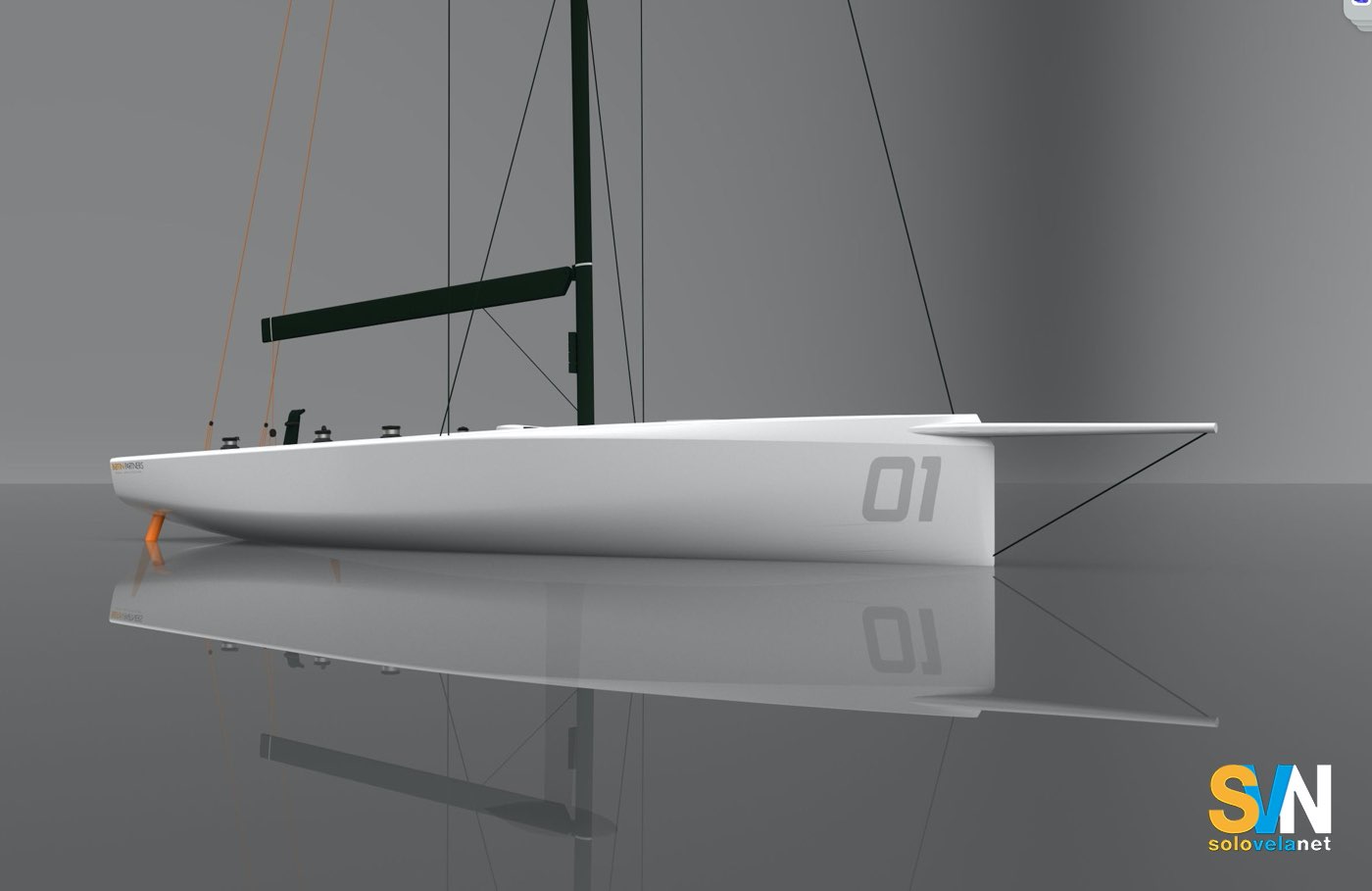 Lo scafo riflette questa filosofia. Linee tese, poppa larga e piatta, doppio timone, prua allungata con bompresso pronunciato. Tutto è orientato alla velocità e al controllo, soprattutto nelle andature portanti e nelle condizioni più impegnative. L’architettura è figlia diretta dell’esperienza maturata nei progetti Botin più recenti, ma qui viene portata all’estremo per rientrare perfettamente nei parametri IRC.