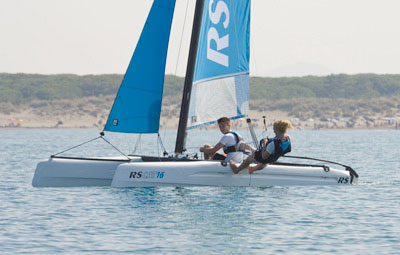 Un Cat sportivo di 16 piedi disegnato da Joe Richard che presenta diverse soluzioni intelligenti. I due scafi sono riempiti con schiuma, il che li rende inaffondabili.