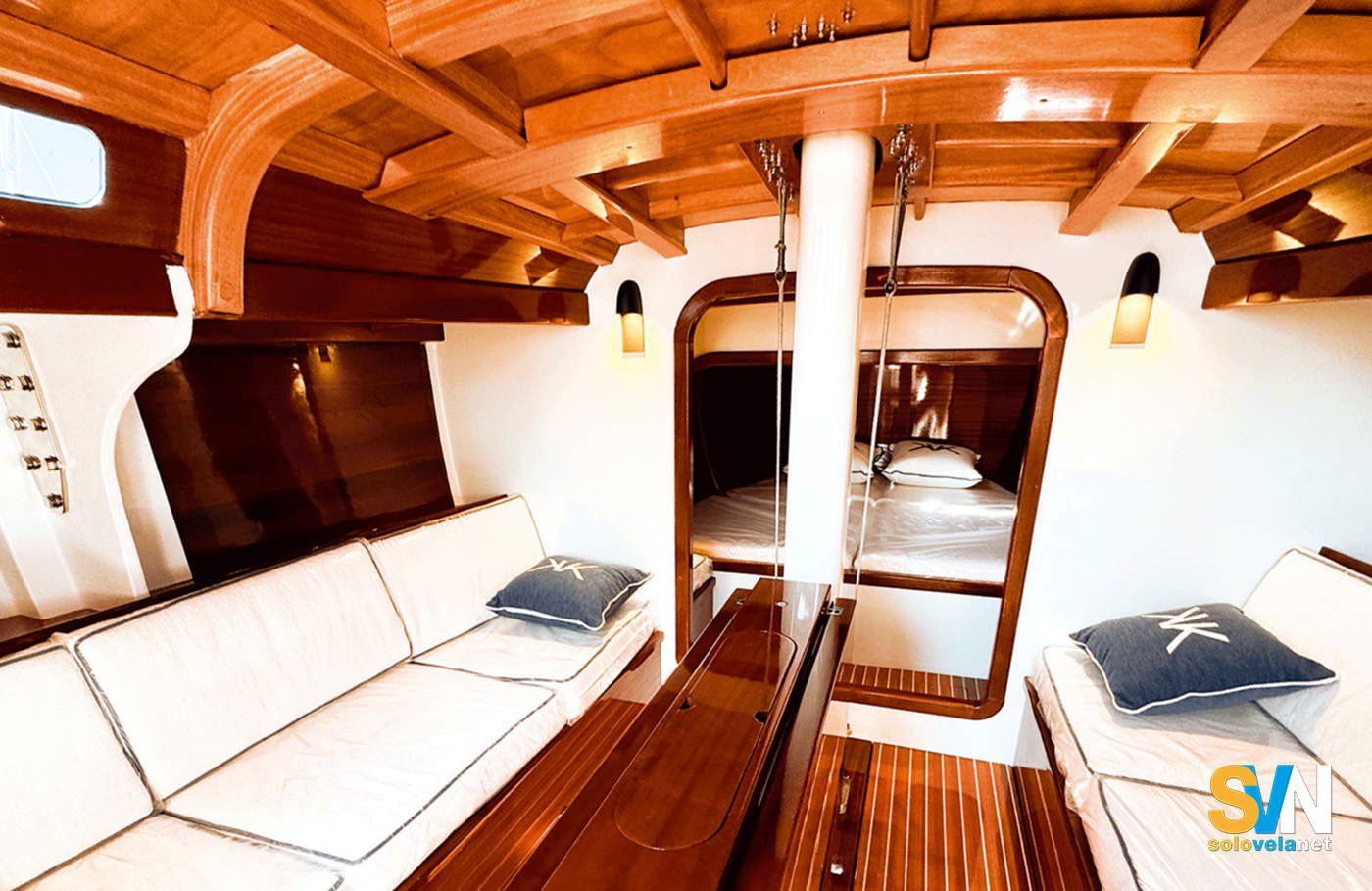 Il Ceccarelli 42 è una barca di grande tradizione, realizzata con un materiale che da solo racconta la storia della vela. Eppure non rifiuta i vantaggi della moderna tecnologia: sul ponte di legno trovano posto la migliore attrezzatura di coperta e un armo che rispecchia la filosofia di Lacorte, per il quale una barca deve navigare veloce e senza compromessi. Anche se si è voluto concedere il piacere di un’imbarcazione che ricorda il passato, le prestazioni restano al centro del progetto.