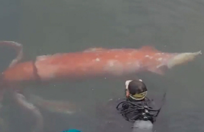A non riuscire a resistere alla curiosità è stato Akinobu Kimura, il proprietario di un negozio di attrezzature nautiche che indossate bombole e maschera si è buttato nelle acque del porto per nuotare con il calamaro il quale però non sembrava particolarmente contento della compagnia. In più occasioni l’animale ha cercato di stringere l’uomo tra le sue spire e gli ha gettato addosso il suo inchiostro. Alla fine Akinobu Kimura è riuscito a spingere il calamaro fuori dal porto ridandogli la libertà.