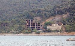 I lavori di costruzione dello “Scheletrone”, concepito alle origini come un hotel con piscina e ristorante, iniziarono nel 1968, per poi fermarsi dopo quattro anni, nel momento in cui l’edificio venne posto sotto sequestro per la violazione della norma che impediva le lottizzazioni in assenza di piano regolatore. Negli anni novanta, i proprietari provarono a riprendere i lavori presentando domanda di condono edilizio, ma il comune di Porto Venere la rigettò. Nel 2002, infine, un accordo tra la stessa città ligure, la Regione Liguria e la soprintendenza per i Beni architettonici, sancì il definitivo abbattimento dello “Scheletrone”. Un’operazione da due milioni di euro, comprensivi anche della quota di duecentomila euro per pagare l’esproprio ai proprietari.
