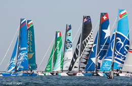 Alinghi (SUI), Emirates Team New Zealand (NZL), GAC Pindar (AUS), Gazprom Team Russia (RUS), Groupama sailing team (FRA), J.P. Morgan BAR (GBR), Oman Air (OMA), Realteam (SUI), Red Bull Sailing Team (AUT), SAP Extreme Sailing Team (DEN), Team Extreme Qingdao (CHN), The Wave, Muscat (OMA).