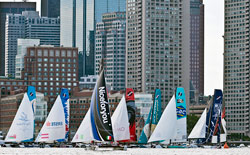 Per quanto riguarda le sfide in mare tra gli Extreme 40, disputate con un vento da ovest di circa dodici nodi, dopo le sette prove disputate in testa alla classifica provvisoria si trova Artemis, con appena un punto di vantaggio su The Wave Muscat. Più staccato Red Bull, distante sei lunghezze dalla vetta, inseguito da un terzetto di prestigio e molto compatto: Groupe Rothschild, Luna Rossa ed Emirates New Zealand. Tutto in ballo, ovviamente, dato l'alto numero di prove che aspettano nei prosssimi giorni i contendenti.