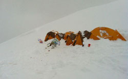 "In alcuni punti la neve raggiungeva il metro di altezza e dover spingere per scendere, ad una quota di 6000 metri è veramente faticoso. Inoltre, a causa della bufera e della nebbia, ho sbagliato il tragitto di pochi metri provocando una valanga. Per fortuna si è fermata dopo un centinaio di metri. Non capivo dove ero e quando si è fermata sono caduto...rialzarmi con uno zaino di 25kg sulle spalle, non è stato per niente facile e nemmeno ritrovare la strada giusta del ritorno...così ho atteso e per fortuna, con una schiarita del cielo, ho visto in lontananza il campo base che finalmente sono riuscito a raggiungere. Dopo di me, sono rientrate anche altre tre spedizioni, cinesi ed iraniani, tutti a ripetere lo stesso commento: mai visto un clima così... Domani rientriamo nella "civiltà" e decidiamo sul dafarsi...Per quest'anno abbiamo dato, ora ci concentriamo per il prossimo..."