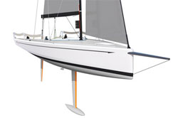 La barca è un grande derivone a chiglia fissa con un baglio di 2,87 metri che inizia all’altezza delle sartie per rimanere quasi costante sino all’estrema poppa. L’albero è in carbonio e sostenuto da due ordini di crocette, questo sostiene un generoso piano velico con randa “square top”.