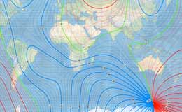 Dalle mappe, che si possono scaricare dal sito americano della NOAA (National Geophysical Data Center), si nota come ormai il polo sud magnetico sia fuori dalle terre antartiche e si trovi vicino al 64° parallelo S.