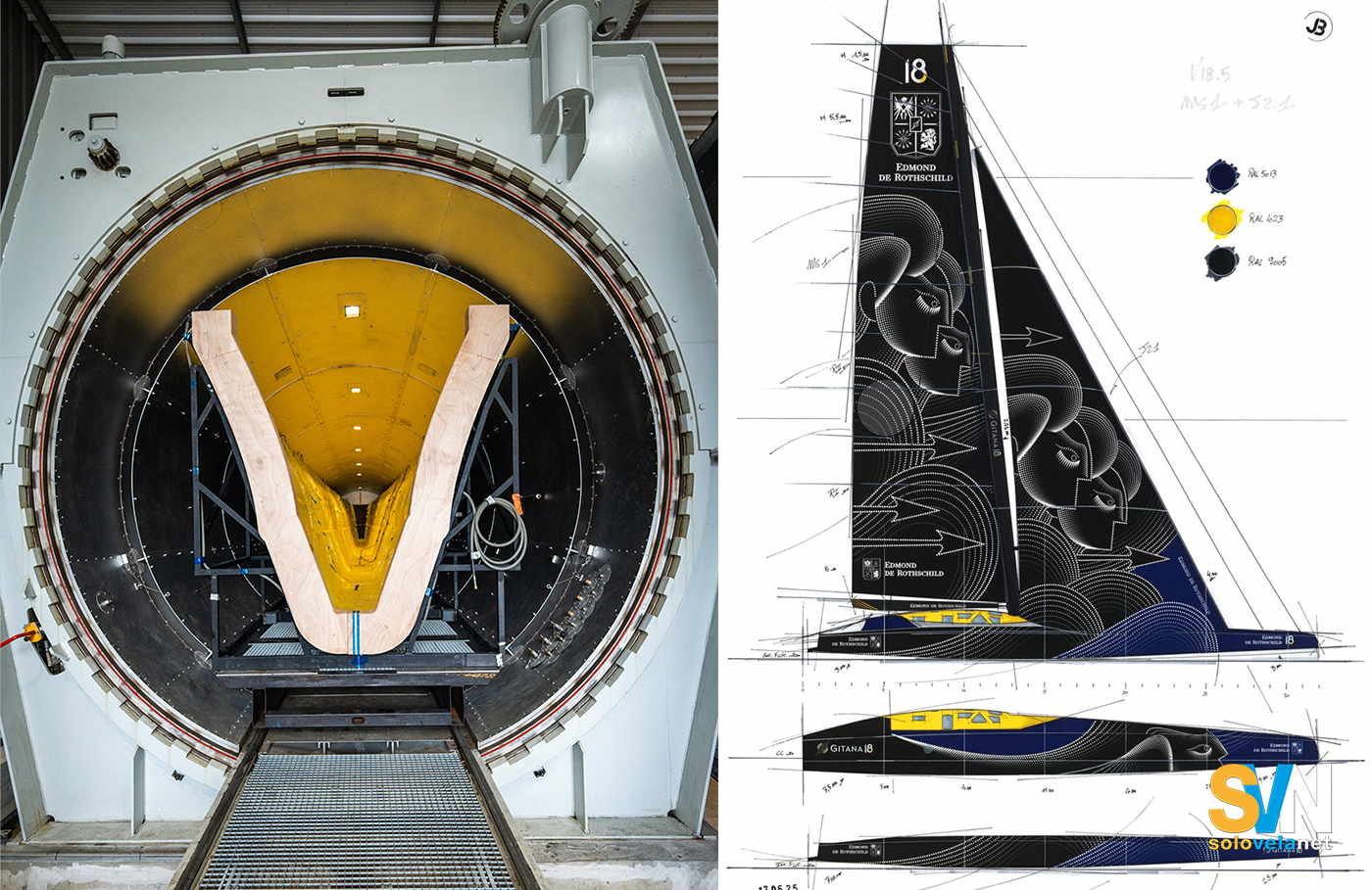 Gitana 18 non è un’evoluzione del precedente Gitana 17, ma un progetto completamente nuovo. L’obiettivo del capo progettista Sébastien Sainson è chiaro: «La barca volerà il 100 % del tempo». Oltre 50.000 ore di progettazione e 200.000 ore di costruzione hanno dato forma a un’imbarcazione pensata fin dall’inizio per il full foiling offshore: ogni elemento – dai foil alla struttura fino ai sistemi di controllo – è stato ottimizzato per efficienza e affidabilità.