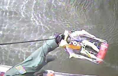 Il centro di pronto soccorso aereo di Huston ha inviato immediatamente un MH-65 Dolphin, un elicottero SAR che dopo un ora circa ha individuato prima la barca e poi l'uomo in mare che fortunatamente al momento della caduta indossava un giubbotto salvagente e lo ha tratto in salvo.