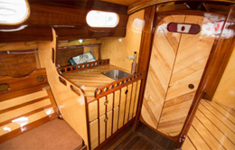 Nella fotografia degli interni della barca di Jeff si nota la porta della cabina di prua sospesa e senza maniglie sullo stile delle porte dei saloon.