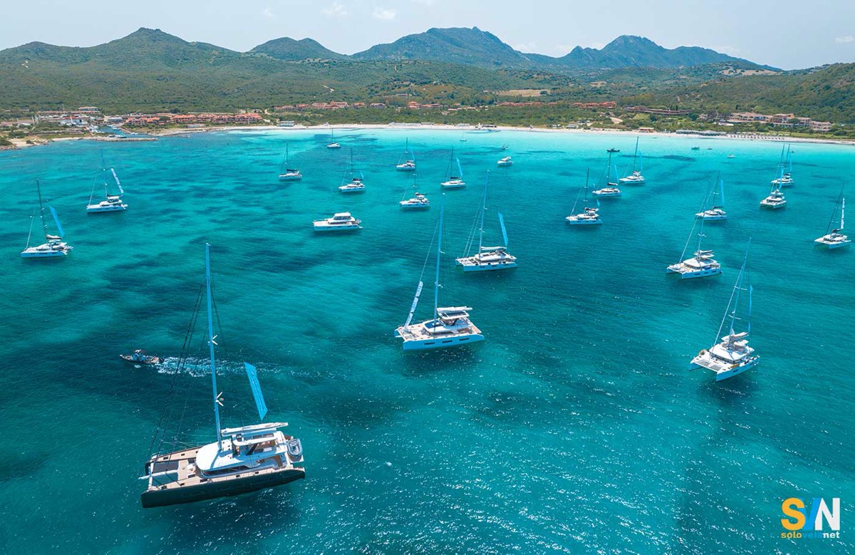 Particolarmente suggestiva è stata la grande parata dei 26 catamarani partecipanti che, sabato mattina, hanno navigato in fila indiana fino a una piccola spiaggia nel golfo di Marinella, dove la NSS Yachting ha offerto un ricco buffet.