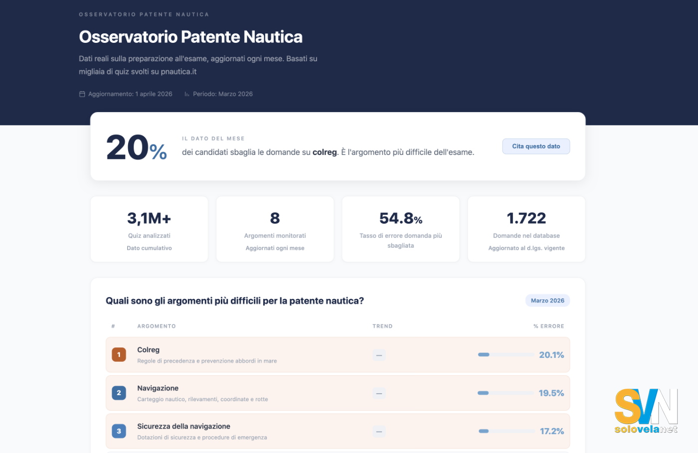 L’Osservatorio Patente Nautica mette finalmente nero su bianco quello che spesso resta una sensazione: prepararsi all’esame non è così semplice come può sembrare. I dati di marzo 2026, basati su 323.108 risposte ai quiz, permettono di capire con precisione dove i candidati incontrano le maggiori difficoltà.