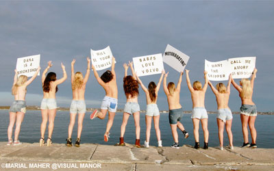 Un negozio di abbigliamento di Newport ha deciso di sfruttare l’arrivo della Volvo Ocean Race per farsi pubblicità e ha schierato 10 belle ragazze in topless ad aspettare in banchina ad aspettare l’arrivo del team turco-americano di Alvimedica.