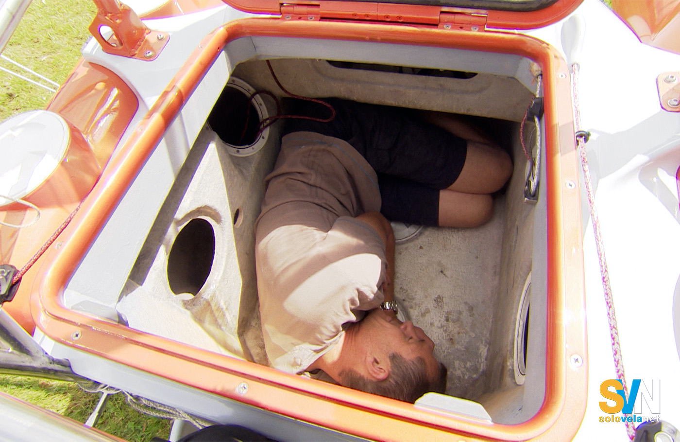 Il concetto alla base del progetto non è quello di “navigare” nel senso tradizionale del termine, ma di mantenere l’integrità della barca e dell’uomo in un ambiente dove ogni errore ha conseguenze immediate. Lo spazio vitale è ridotto all’essenziale, la posizione di riposo è forzatamente seduta o semi-distesa, e gran parte del tempo viene trascorsa all’interno di una cellula chiusa, progettata per isolare il più possibile dall’acqua e dal freddo. In questo contesto, la stabilità non è intesa come assenza di movimenti, ma come capacità dello scafo di continuare a svolgere la propria funzione anche dopo urti, sbandate estreme o capovolgimenti.