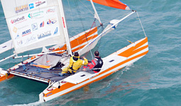 I due velisti italiani stanno ultimando la loro preparazione al largo di Ostia. “Sono allenamenti duri – ha raccontato Tullio Picciolini – perchè in mare ci stiamo tanto e con ogni condizione meteo, anche per 12 ore di fila. Ma è assolutamente necessario che la nostra sintonia a bordo sia perfetta e ci siamo quasi. Abbiamo provato di tutto, anche a scuffuare e ritirare su la barca con una C estraibile, che abbiamo applicato allo scafo proprio per queste emergenze. La manovra funziona benissimo, anhe se speriamo di non doverla mai effettuare”.